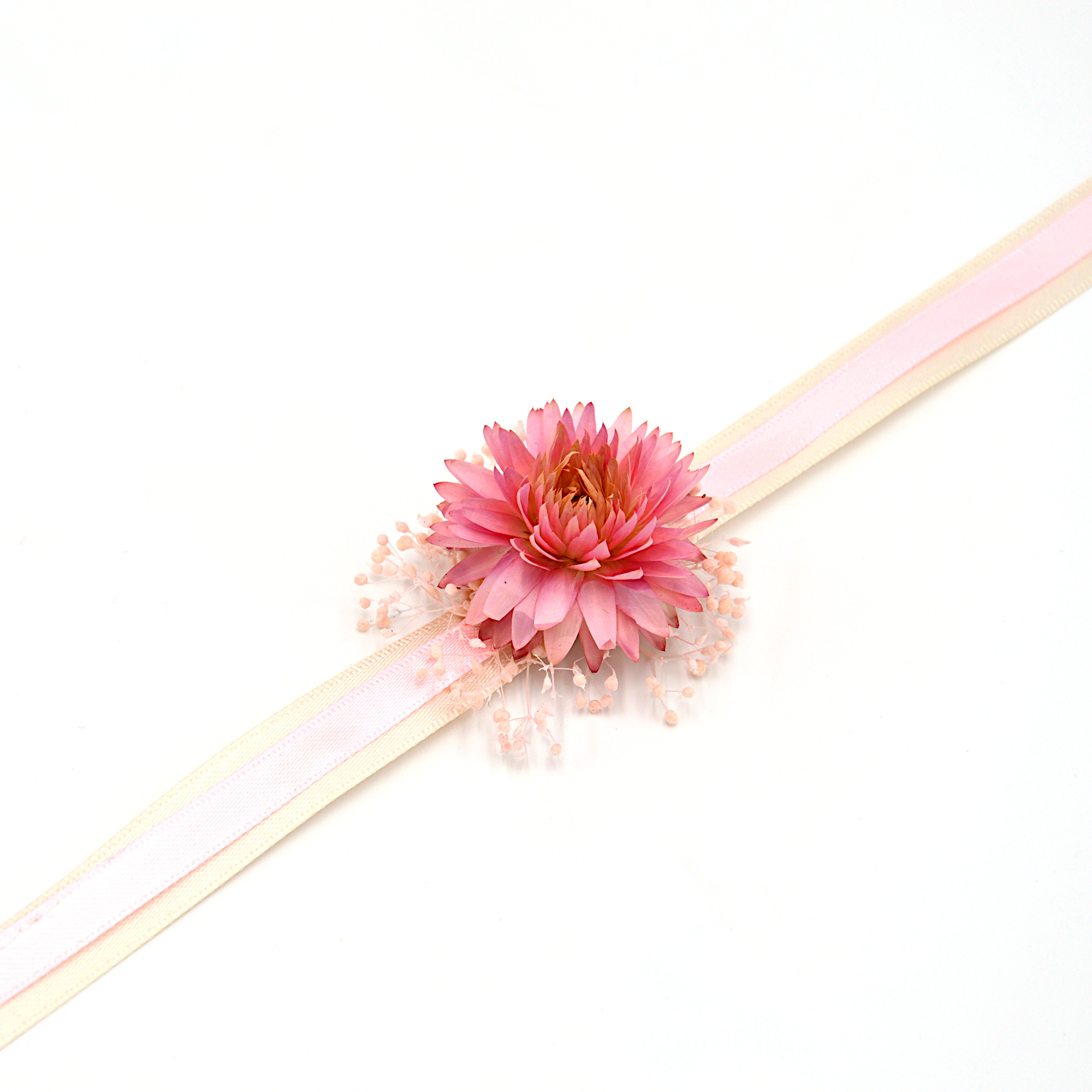 • Composition : fleurs stabilisées et séchées (gypsophile mini rose et immortelle rose)