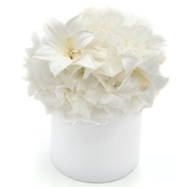 - Composition : fleurs d’hortensia et fleurs de lys stabiliséss